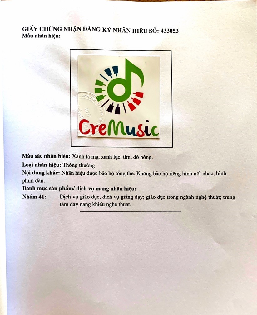 Bản quyền logo Cremusic và đăng ký nhãn hiệu Cremusic